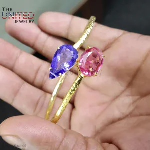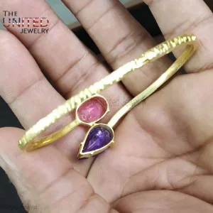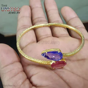 925 Sterling Silver Pink Sapphire And Blue Sapphire Handmade Designer Bangle Jewelry For Women’s