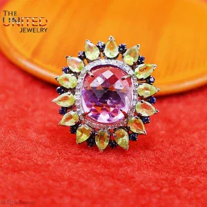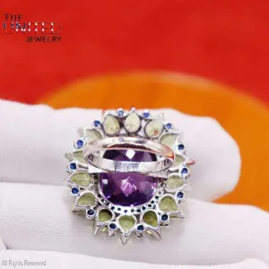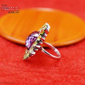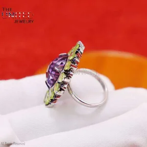 925 Sterling Silver Ring Jewelry, Amethyst Finger Ring, Silver Ring, Women’s Amethyst Ring, Peridot Women’s Ring