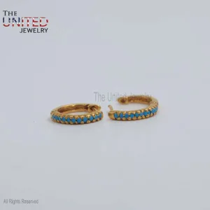 925 Sterling Silver Turquoise Earrings, Turquoise Hoop Earrings, Turquoise Handmade Hoop Earrings, Turquoise Round Shape Earrings