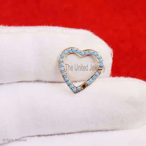 9K Gold Turquoise Heart Shape Charms Holder, Gold charm, Gold Heart Diamond Lock, Handmade Gold Heart Diamond Charm Holder