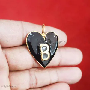 Black Enamel Heart Shape 925 Sterling Silver Pendant, Enamel Heart Pendant, Silver Love Heart Pendant, Initial Pendant