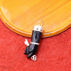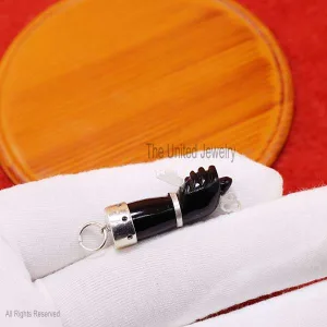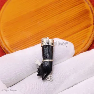 Black Onyx Figa Pendant 925 Sterling Silver, Figa Hand Symbol Pendant, Gemstone Figa Pendant Jewelry, Gemstone Figa with Key Silver Pendant