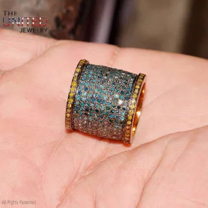 Blue Sapphire With Yellow Sapphire Finger Ring, 925 Sterling Silver Sapphire Band Ring Jewelry, Women Finger Ring Jewelry