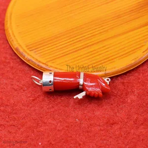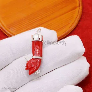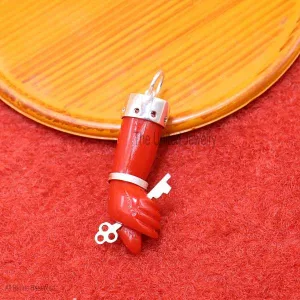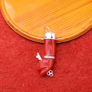 Coral Figa Pendant 925 Sterling Silver, Figa Hand Symbol Pendant, Gemstone Figa Pendant Jewelry, Gemstone Figa with Key Silver Pendant