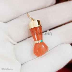Coral Figa Pendant 925 Sterling Silver Turquoise Gemstone Figa Hand Symbol Pendant