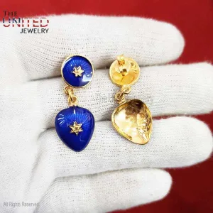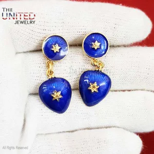 Designer Blue Enamel Handmade Silver Dangle Earrings Jewelry, Silver Dangle Earrings Jewelry