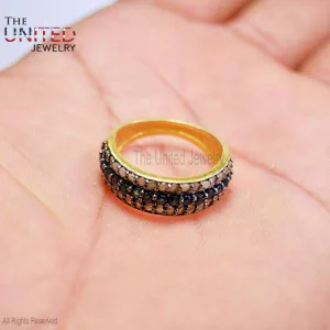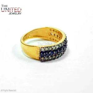 Diamond Ring 925 Sterling Silver Natural Single Cut Pave Diamond and Blue Sapphire Band Shape Beautiful Handmade Ring Jewelry For Women’s