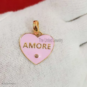 Enamel Handmade Sterling Silver AMORE Heart Pendant Necklace Jewelry, Heart Pendant, Silver Heart Pendant Jewelry, Handmade Enamel Silver Heart Pendant Jewelry
