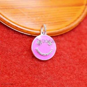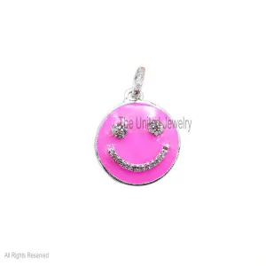 Enamel Handmade Sterling Silver Smiley Face Shape Pave Diamond Pendant Jewelry, Silver Emoji Enamel Pendant Jewelry