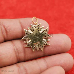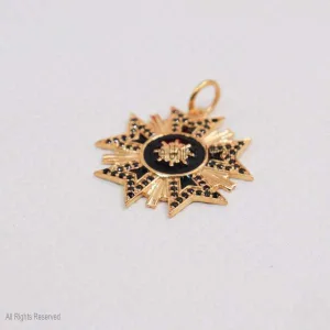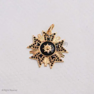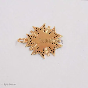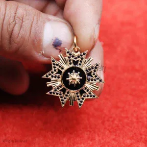 Enamel Pendant, Silver Black Onyx Sun Shape Pendant, Handmade Gold Plating Enamel Pendant Jewelry, Silver Enamel Black Onyx Sun Shape Pendant