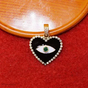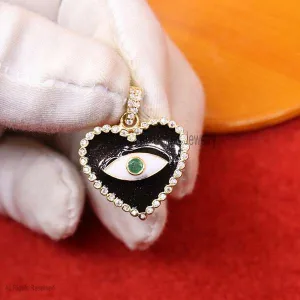 Enamel with Diamond Handmade Evil Eye Heart Pendant Sterling Silver Pendant, Designer Enamel with Diamond Pendant, Enamel Heart Pendant