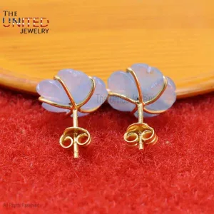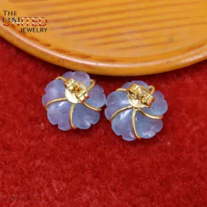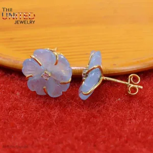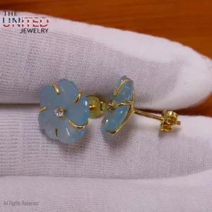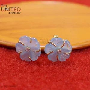 Gemstone Carved Flower Sterling Silver Studs Earrings, Carved Gemstone Flower Women Studs, Carved Gemstone With Diamond Stud Earrings