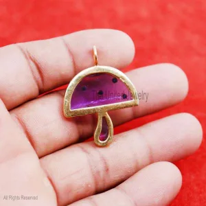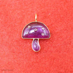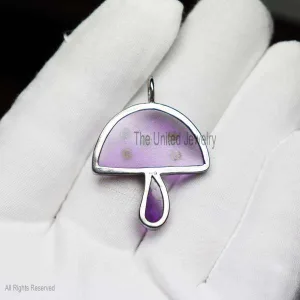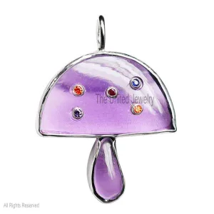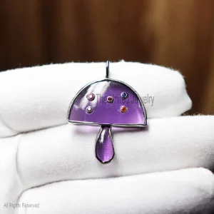 Gemstone Handmade Magic Multisapphire Mushroom Sterling Silver Pendant Necklace, Designer Mushroom Pendant