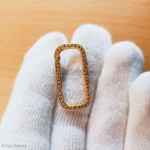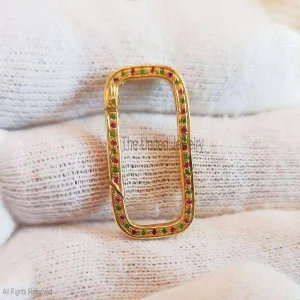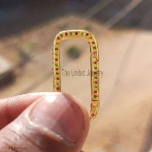 Gold Plating 925 Sterling Silver Pave Multisapphire Charm Holder, Gold Plated Handmade Sterling Silver Multisapphire Oval Shape Charm Holder Jewelry
