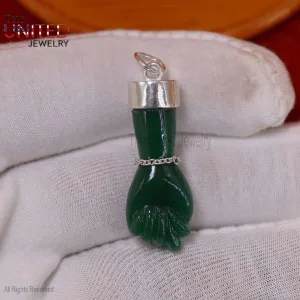 Green Onyx Figa Pendant 925 Sterling Silver Green Onyx Gemstone Figa Hand Symbol Pendant, Gemstone Figa Pendant Jewelry