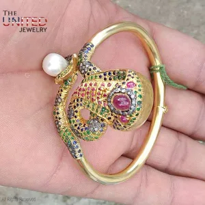 Handmade 925 Sterling Silver Multisapphire Snake Design bangle Jewelry For Women
