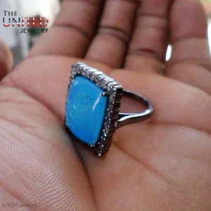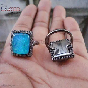Handmade 925 Sterling Silver Pave Diamond Opal Ring Jewelry, Opal Ring, Silver Ring, Diamond Ring