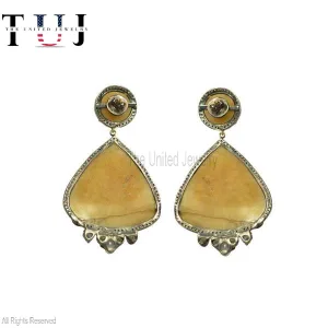 Handmade 925 Sterling Silver Pave Diamond With Yellow Sapphire Designer Dangles Earrings For Women