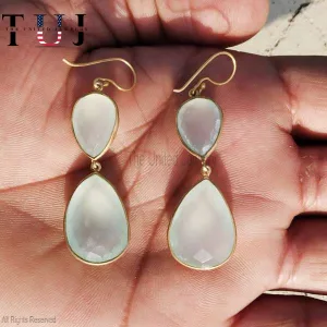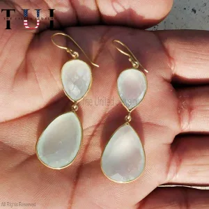 Handmade 925 Sterling Silver White Moonstone Designer Dangles Earrings For Women