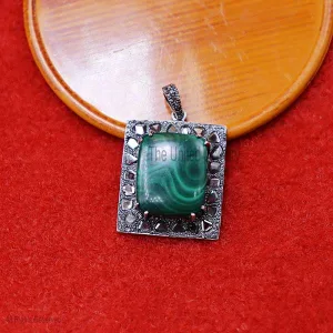Handmade Malachite Pendant, Sterling Silver Malachite Slice Diamond Pendant Jewelry, Gemstone Slice Diamond Pendant, Silver Gemstone Pendant