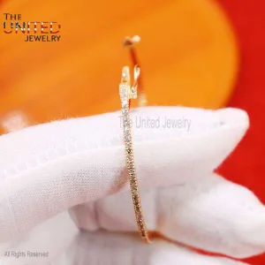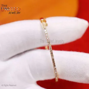 Handmade Sterling Silver Half Pave Diamond Round Bangle Jewelry