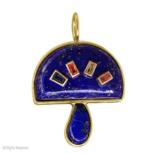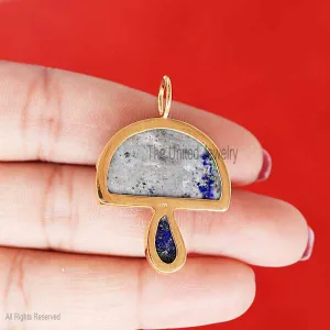 Lapis Lazuli Gemstone Handmade Magic Mushroom Sterling Silver Pendant Necklace, Designer Mushroom Pendant