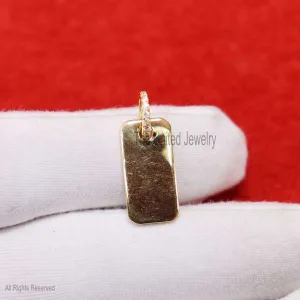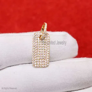 Moissanite Sterling 14k Gold Dog Tag Charms, 14k Gold Dog Tag Charms, Moissanite Pendant Charms, 14k Dog Tag Charms, Gold Dog Tag Pendant