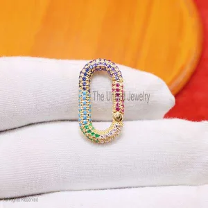 Multisapphire Handmade Push Snap Lock Jewelry, Silver Multisapphire Snap Enhancer Lock, Sterling Silver Charm Holder Lock