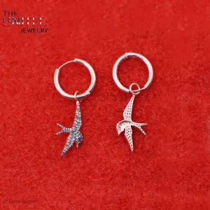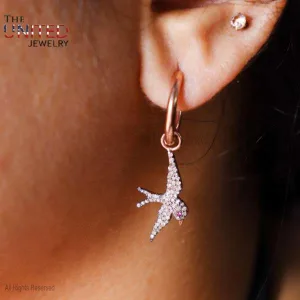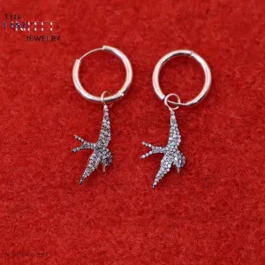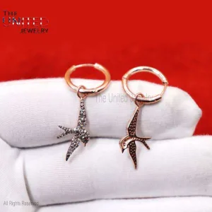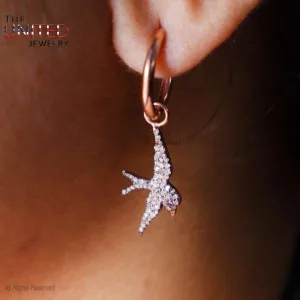 Natural Pave Diamond Bird Earrings Jewelry, Sterling Silver Handmade Bird with Round Ring Earrings Jewelry, Dangle Earrings