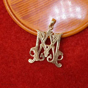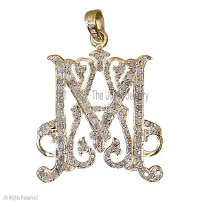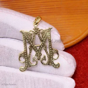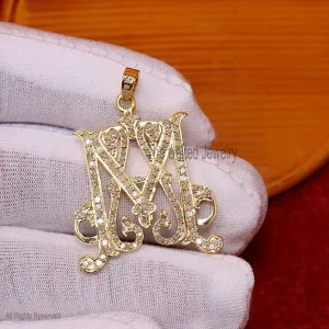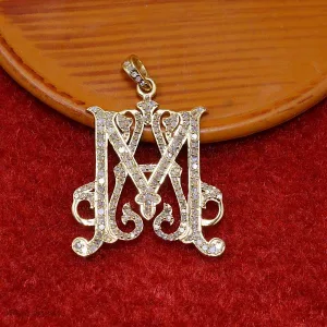 Natural Pave Diamond Handmade M Shape Initial Monogram Pendant Jewelry, Personalized Silver Monogram Jewelry