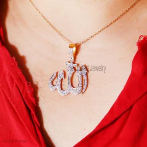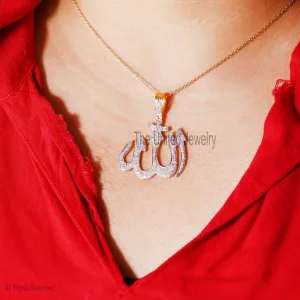 Natural Pave Diamond Handmade Sterling Silver Allah Pendant Jewelry, Islamic Sign Pendant, Bismillah Pendant