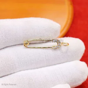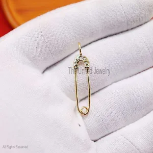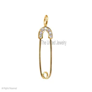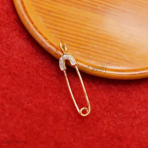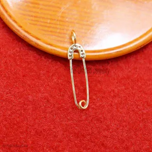 Natural Pave Diamond Handmade Sterling Silver Yellow Gold Plating Tiny safety Pin Charm, Silver Diamond Safety Pin Charm, Diamond Pendant