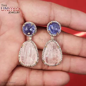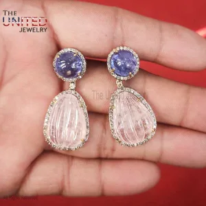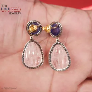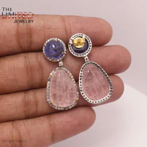 Natural Pave Diamond Solid Sterling Silver Dangle Earrings, Silver Earrings, Diamond Silver Earrings Jewelry