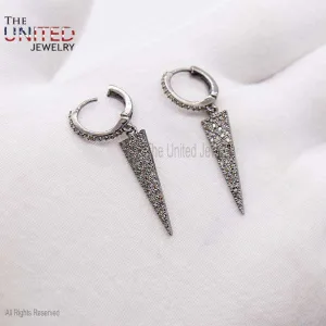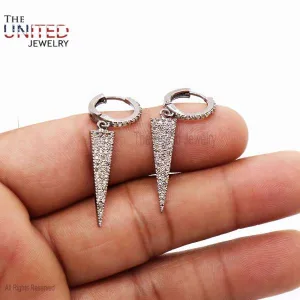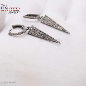 Natural Pave Diamond Spike Earrings Jewelry, Sterling Silver Handmade Triangle Shape Handmade Earrings Jewelry, Dangle Earrings