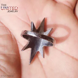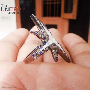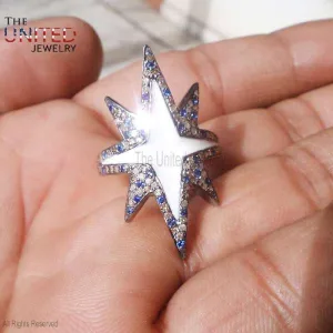 Natural Pave Diamond Star Shape White Enamel Sapphire Handmade Sterling Silver Ring Jewelry, Star Diamond Ring, Ring Jewelry