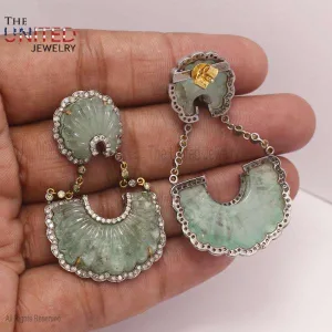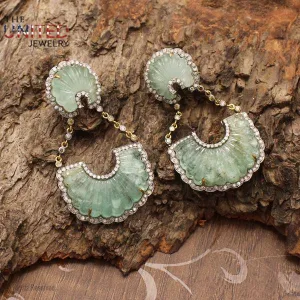 Natural Pave Diamond Sterling Silver Dangle Earrings, Diamond Silver Earrings, Diamond Silver Dangle Earrings Jewelry, Handmade Dangle Earrings Jewelry