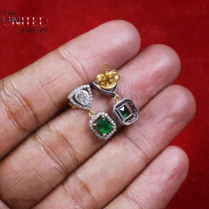 Natural Pave Diamond Sterling Silver Emerald Earrings, Silver Earrings, Diamond Silver Earrings Jewelry, Handmade Emerald Diamond Earrings Jewelry