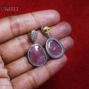 Natural Pave Diamond Sterling Silver Ruby Dangle Earrings, Diamond Silver Earrings, Ruby Diamond Silver Earrings Jewelry