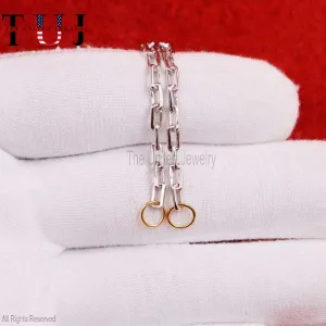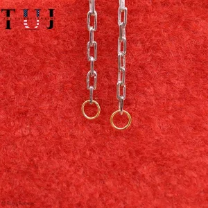 Paper clip chain necklace, yellow gold ring silver chain, 925 silver paper clip chain, square link chain necklace, handmade paper clip chain