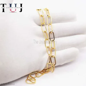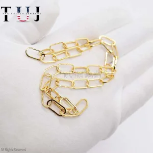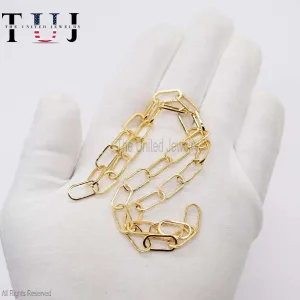 Paper Clips Chain Necklace, 925 Silver Gold Vermeil Paper Clip Chain Necklace, Handmade Long Link Bar Necklace Jewelry