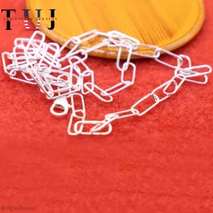 Paper Clips Chain Necklace, 925 Silver Gold Vermeil Paper Clip Chain Necklace, Handmade Long Link Bar Necklace Jewelry