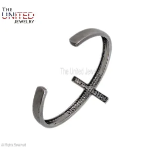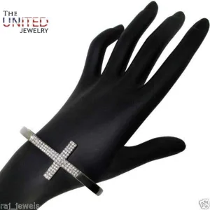 Pave Diamond Cross Cuff Bangle, Silver Pave Diamond Cross Cuff Bangle, Handmade Sterling Silver Pave Diamond Cross Cuff Women’s Bangle Jewelry