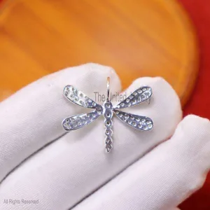 Pave Diamond Dragonfly Pendant, 925 Sterling Silver Dragonfly Pendant Jewelry, Diamond Dragonfly Charm Pendant