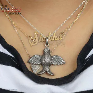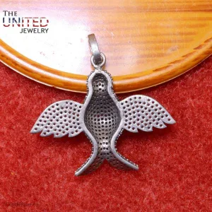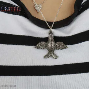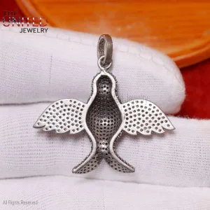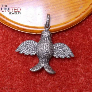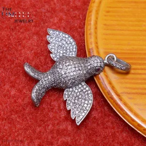 Pave Diamond Handmade Sterling Silver Bird Pendant, Diamond Bird Pendant Jewelry, Handmade Silver Pave Diamond Bird Charm For Women’s
