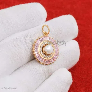 Pink Topaz with Diamond and Pearl Pendant Charm Jewelry, Silver Diamond and Pink Topaz with Pearl Charms, Diamond Charms, Pearl Charm