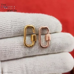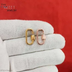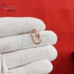 Rose Gold Plating Sterling Silver Carabiner Screw Lock, Handmade Carabiner Clasp Lock Jewelry