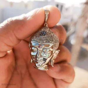 Silver Pave Diamond Buddha Pendant, Diamond Buddha Pendant, Handmade Silver Buddha Charm Pendant Jewelry, Silver Diamond Buddha Pendant Jewelry