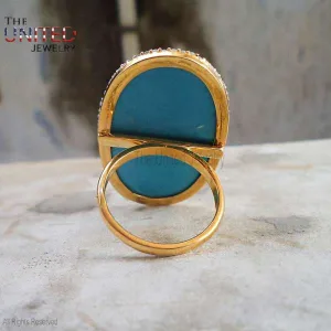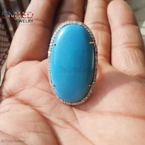 Sleeping Beauty Turquoise Natural Pave Diamond Sterling Silver Ring, Turquoise Ring, Handmade Sterling Silver Jewelry