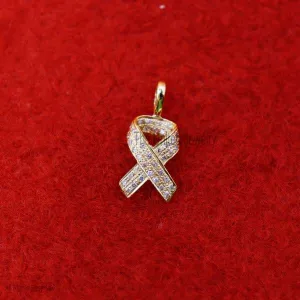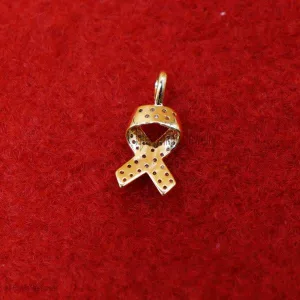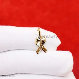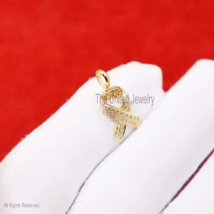 Small Awareness Ribbon 14K Cubic Zircon Pendant, 14k Gold Awareness Ribbon Necklace, Awareness Ribbon Charm, 14k Gold Awareness Ribbon Charm