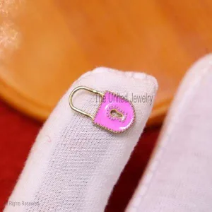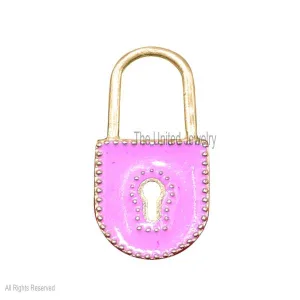 Small Enamel Lock Charm Pendant Jewelry, Designer Tiny Enamel Handmade Lock Charm For necklace